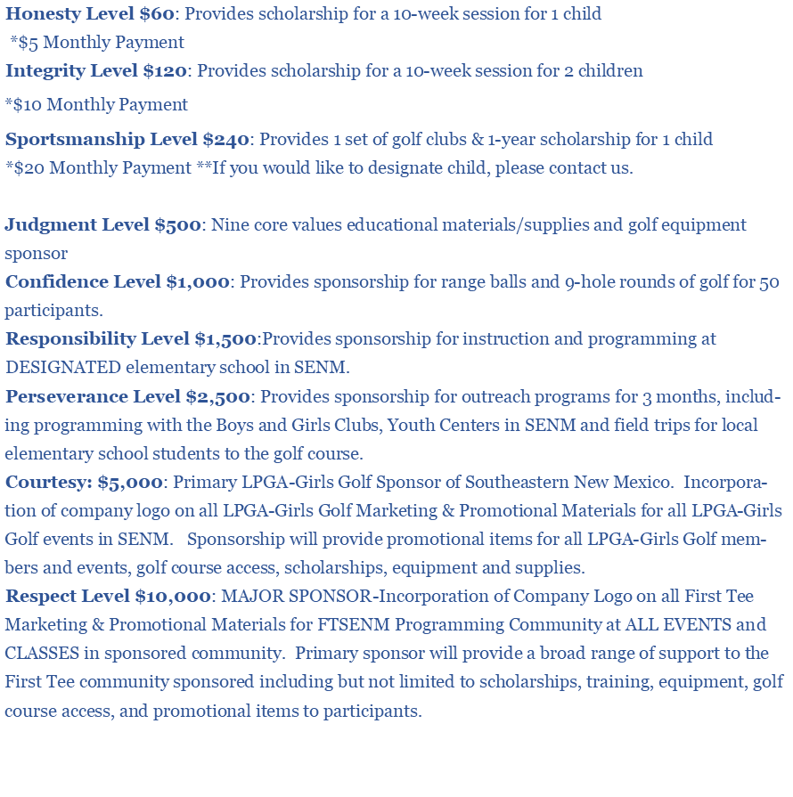 May 2020 Core Values Donation Levels